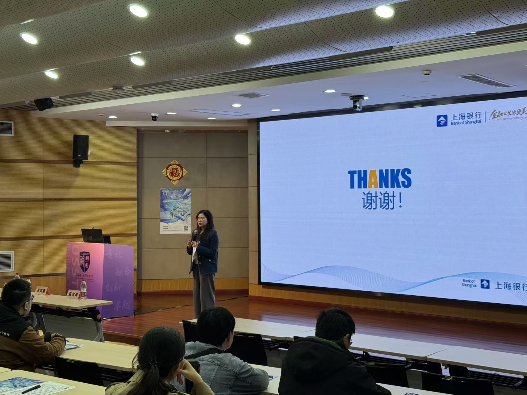 上海银行静安支行客户经理赵淑丹作为校友,以自身入职后的成长经历为切入点,分享在上海银行的工作体验、实战心得与职业收获,用真实案例让学子们对银行岗位工作内容、能力要求有了更直观、真切的认识。随后,王静宜经理再次展开分享,深入解读上海银行“人才兴行”的发展理念与青年人才培养机遇,为学子们的职业规划提供专业建议。