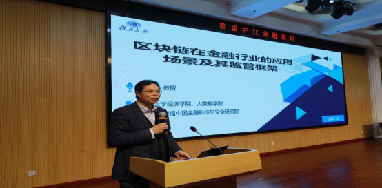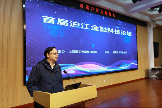 管理学院院长赵来军教授首先致开幕辞,对到场的各位嘉宾表达了热烈的欢迎和感谢,他表示管理学院一直高度关注金融科技创新驱动的发展动态,这次论坛的召开不仅有利于促进学术交流和创新,还有利于相关学科发展建设。金融与科技的融合发展是大势所趋,金融科技具有广阔的应用前景和市场空间。上海也在大力推进金融科技中心建设,研究机构要与从业单位加强沟通,共同推动金融科技健康有序发展,为现代金融体系建设、经济高质量、为金融科技更好服务实体经济发展贡献力量。最后赵院长预祝本次论坛取得圆满成功。
