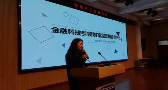 随后四位嘉宾围绕金融科技的话题展开了主题演讲,首先是复旦大学经济学院刘庆富教授分享了“区块链的金融应用及其监管架构”,刘教授从区块链的底层逻辑讲到了区块链的具体应用,并对区块链的监管架构做了深入解析,逻辑严密又通俗易懂;平安证券信息技术中心产品商业组执行副总经理桂安辉先生分享了“金融科技在二级交易市场的应用”,他以平安证券核心的金融科技产品为例,从实际应用的角度诠释了金融科技的魅力;湘财证券投顾业务部量化研究员朱禛仪分享了“金融科技引领财富管理智能化”,介绍了湘财证券如何利用金融科技解决财富分配和增值的问题,用量化思维构建投资策略,用排除主观情绪的科技手段辅助客户做出理智的决策;最后,管理学院金融系段江娇副教授做了“互联网股票大数据的智能处理与应用”的报告。分析了金融科技的学术研究方法,用Python获取客观数据并进行统计分析,展示了精彩的学术思维。